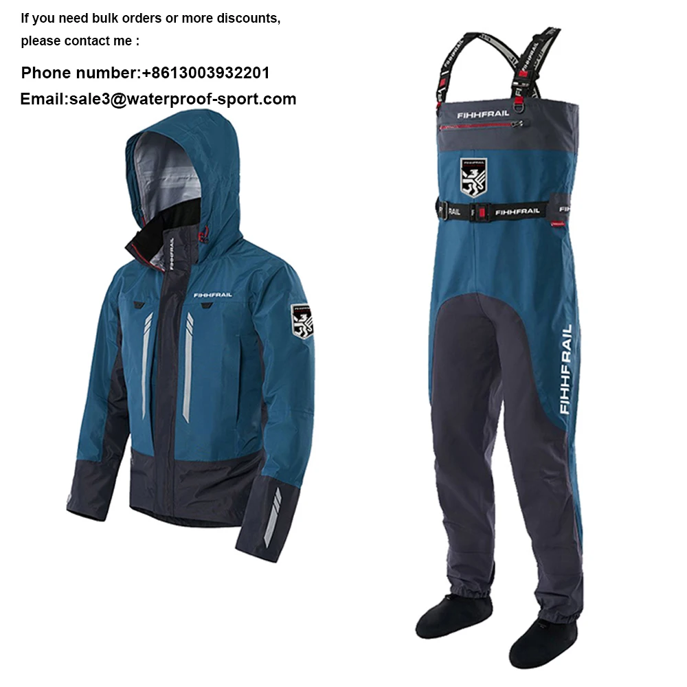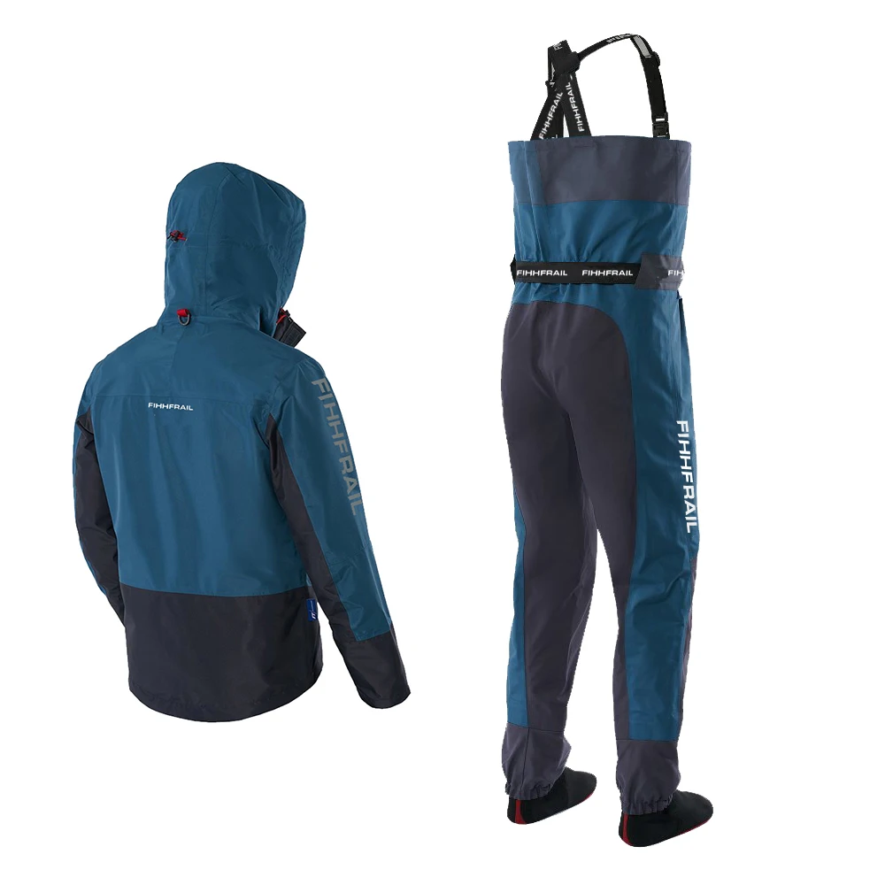 КОМПЛЕКТ AQUAMASTER BLUE Waterproof Jacket And Wader Use for Hunting Fishing ATV UTV Off Road Outdoor Sport Clothing Men Suit