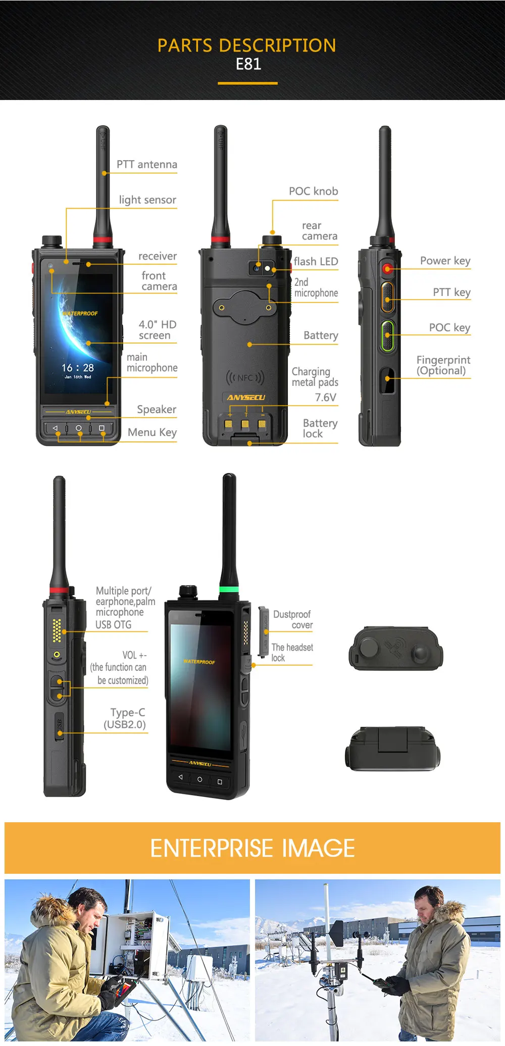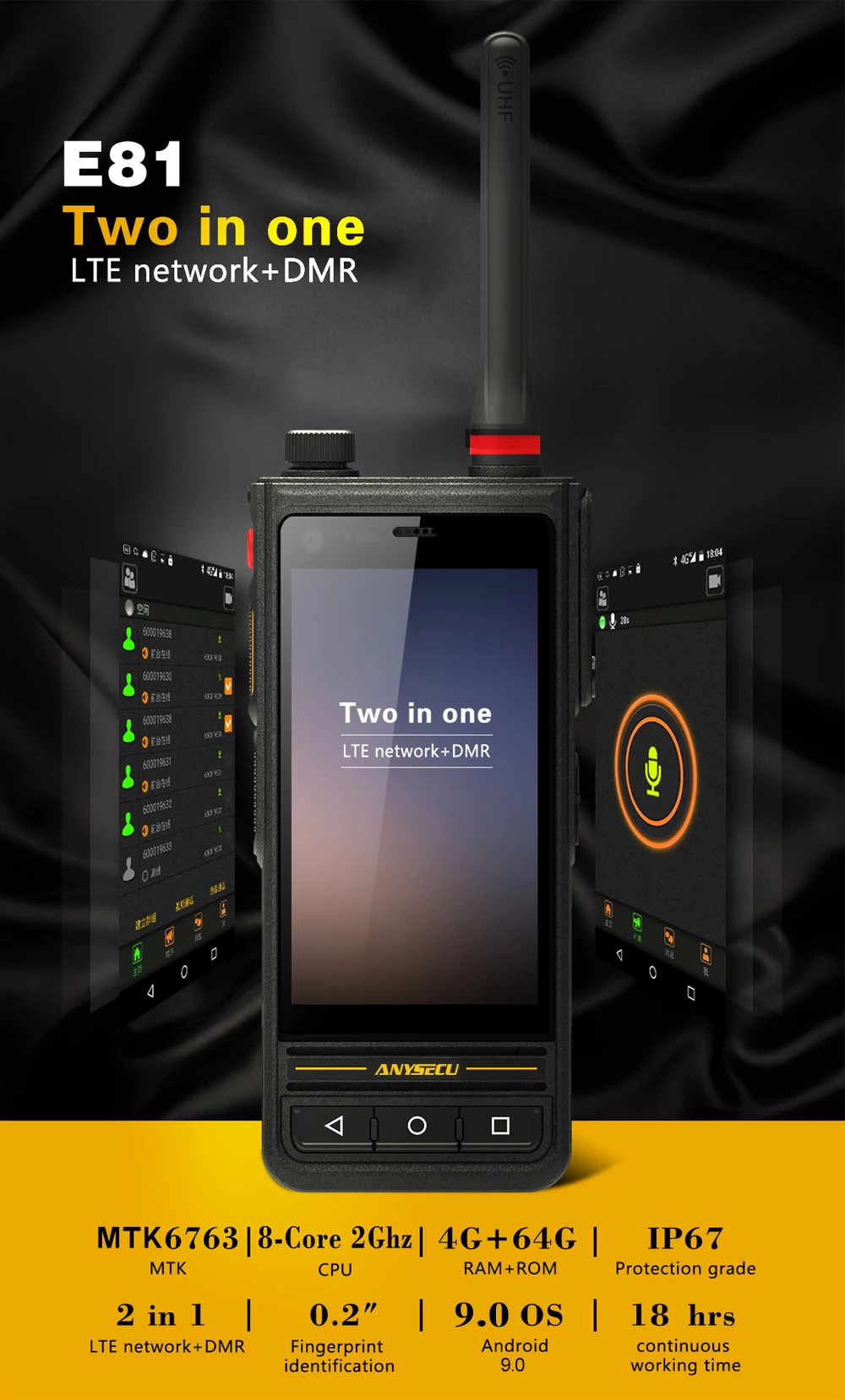2023 IP67 Waterproof E81 Rugged phone 4G LTE Network Radio DMR + UHF 400-470MHZ POC Walkie Talkie Smart Mobile Phone