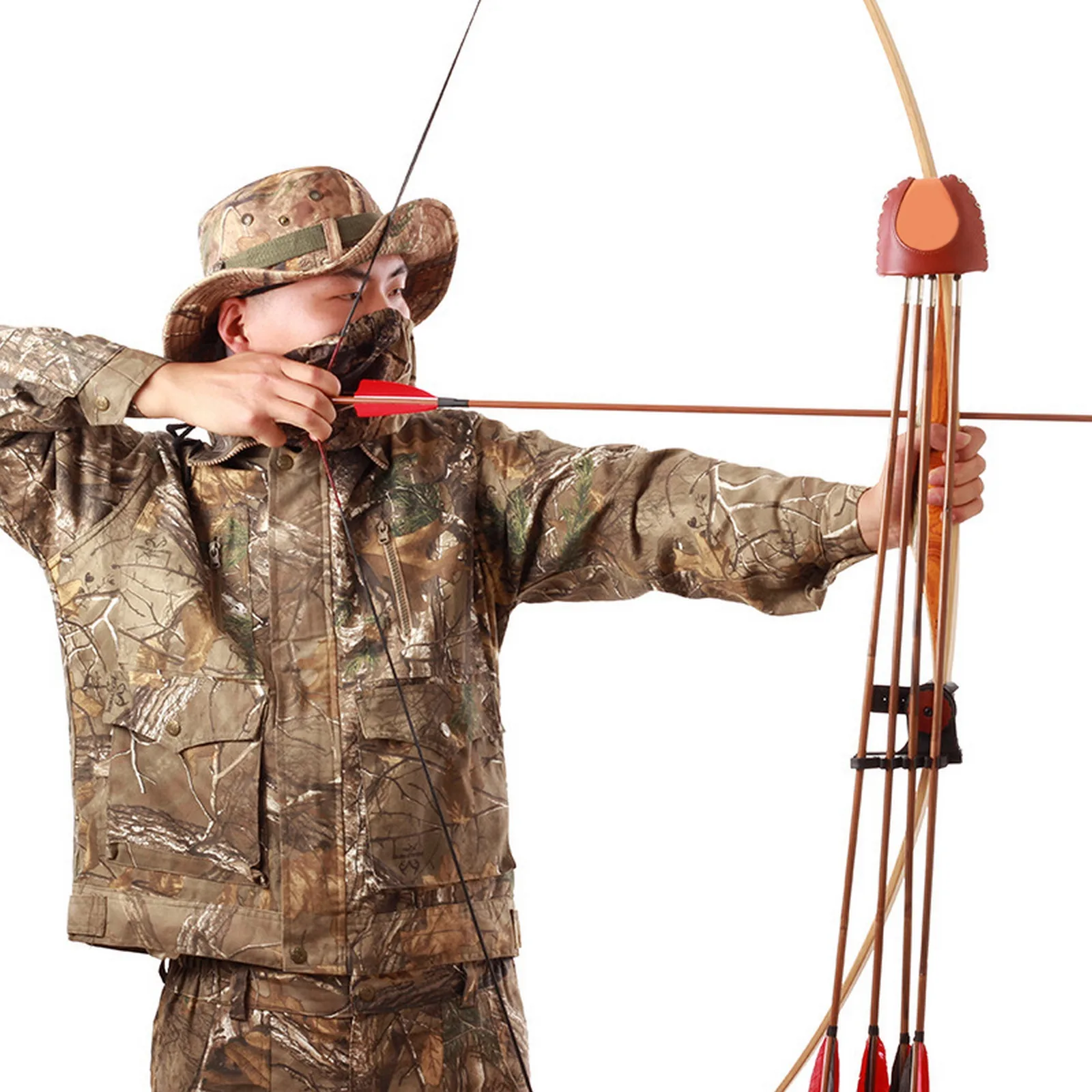 Archery Strap-on Arrow Storage Box Quiver Holder Traditional Longbow Recurve Bow Leather For Outdoor Hunting