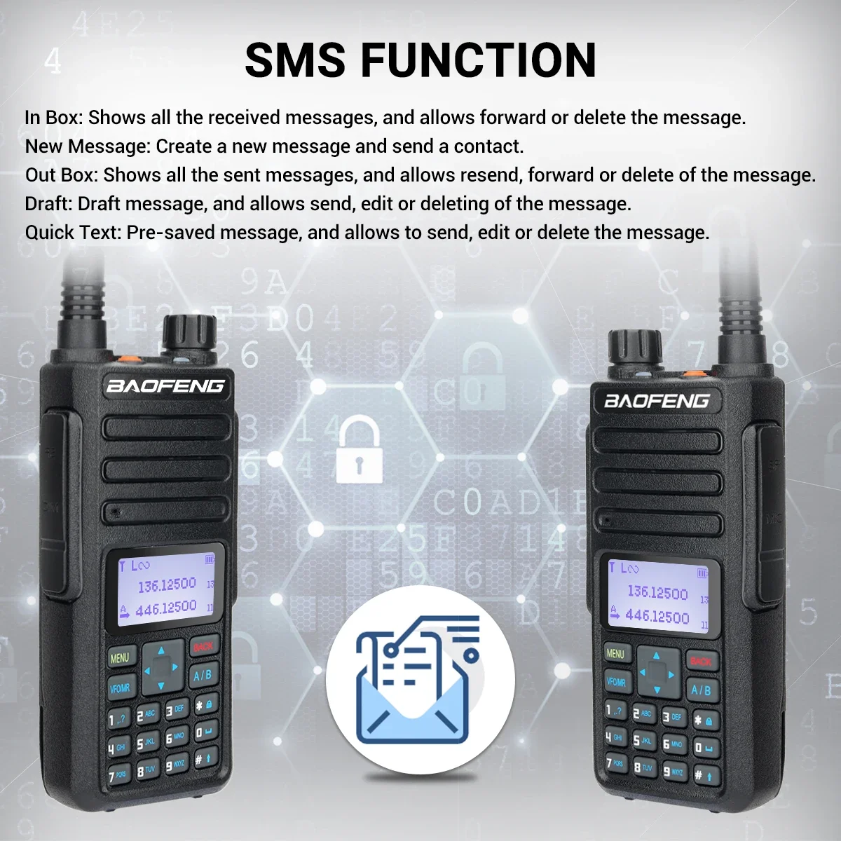 You can use our DMR walkie-talkie to send text messages to your friends, and also receive text messages from other DMR devices.