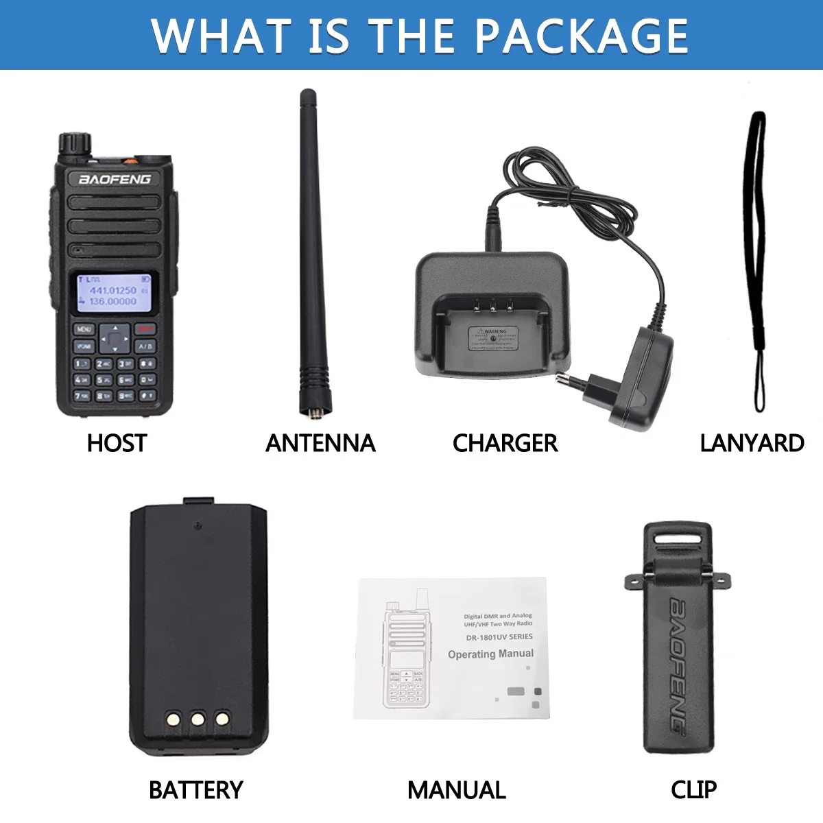 Baofeng DR-1801 DMR Digital Walkie Talkie Dual Time Slot Analog Tier 1&2 Long Range Dual Band 1024CH DM-1801 Ham Two Way Radio
