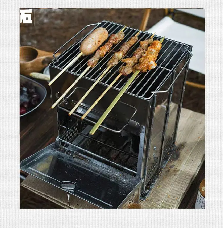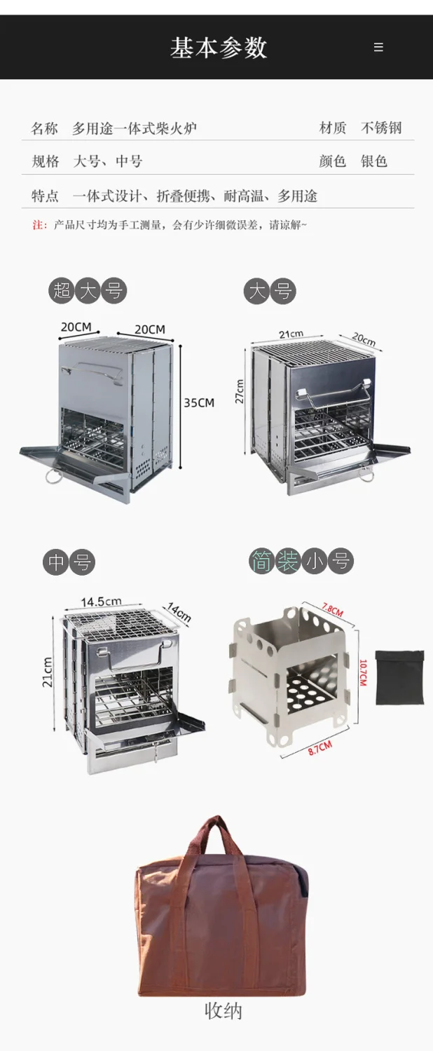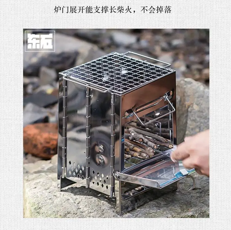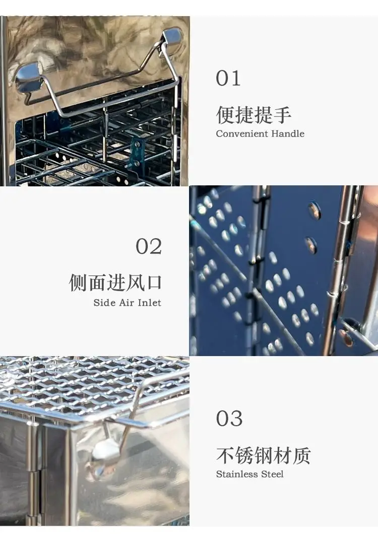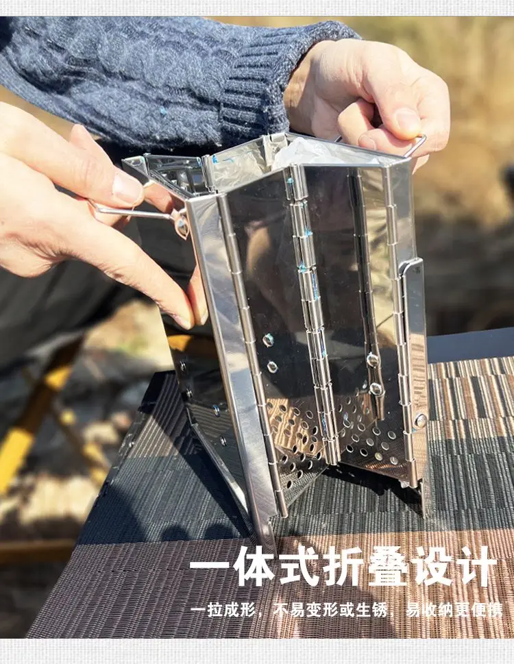 Outdoor Portable Wood Stove Mountain Camping Picnic Folding Charcoal Grill Field Camping Stainless Steel Barbecue Grill