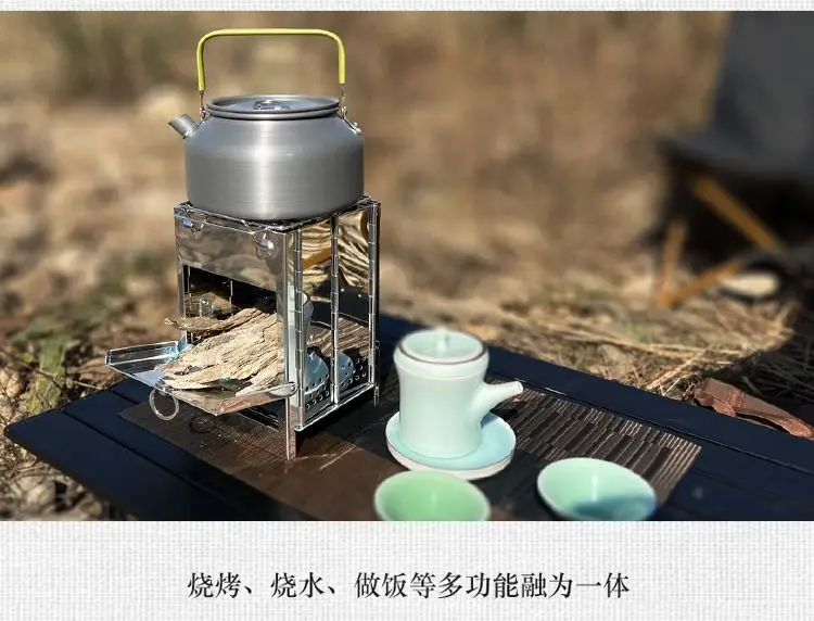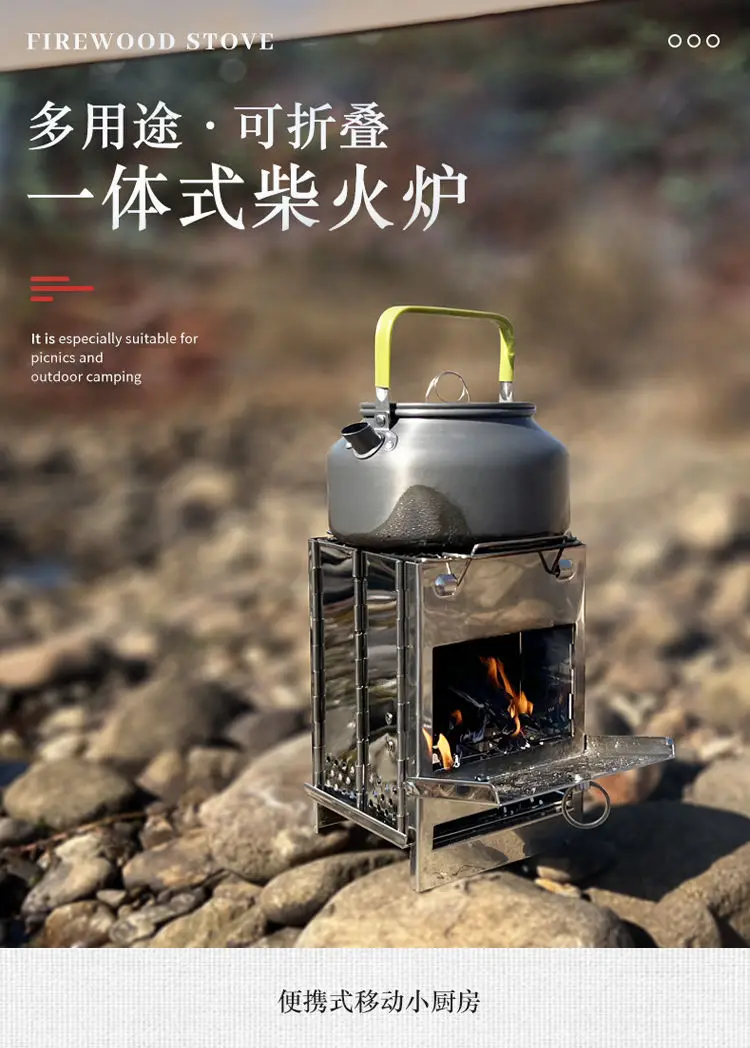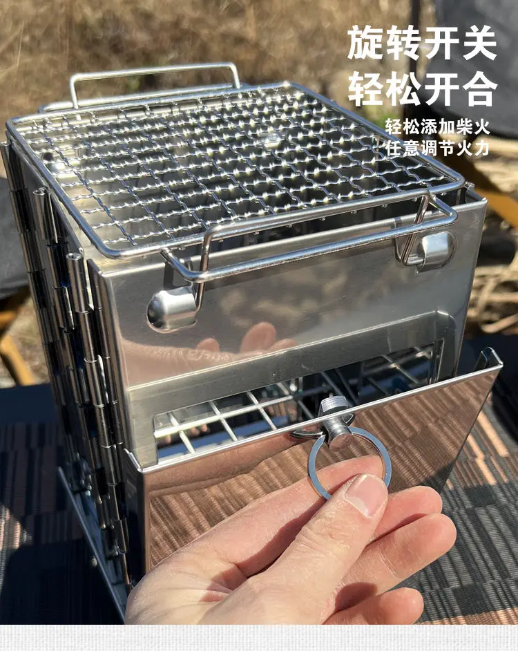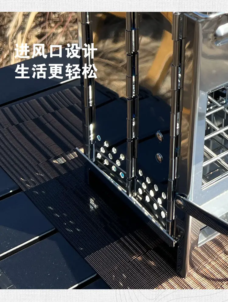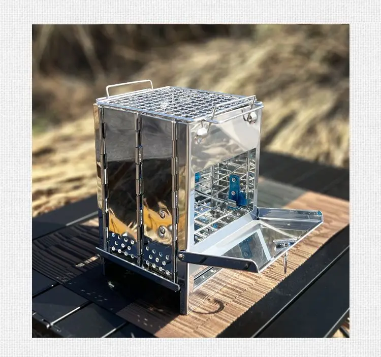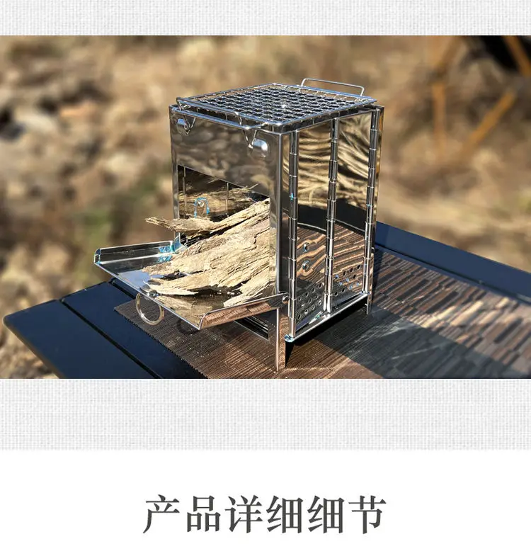 Outdoor Portable Wood Stove Mountain Camping Picnic Folding Charcoal Grill Field Camping Stainless Steel Barbecue Grill