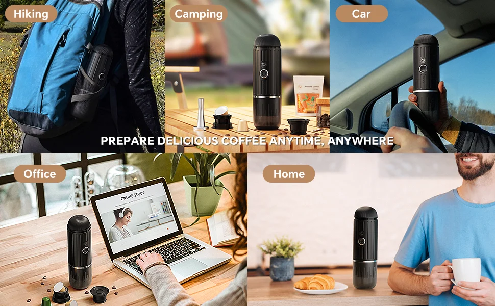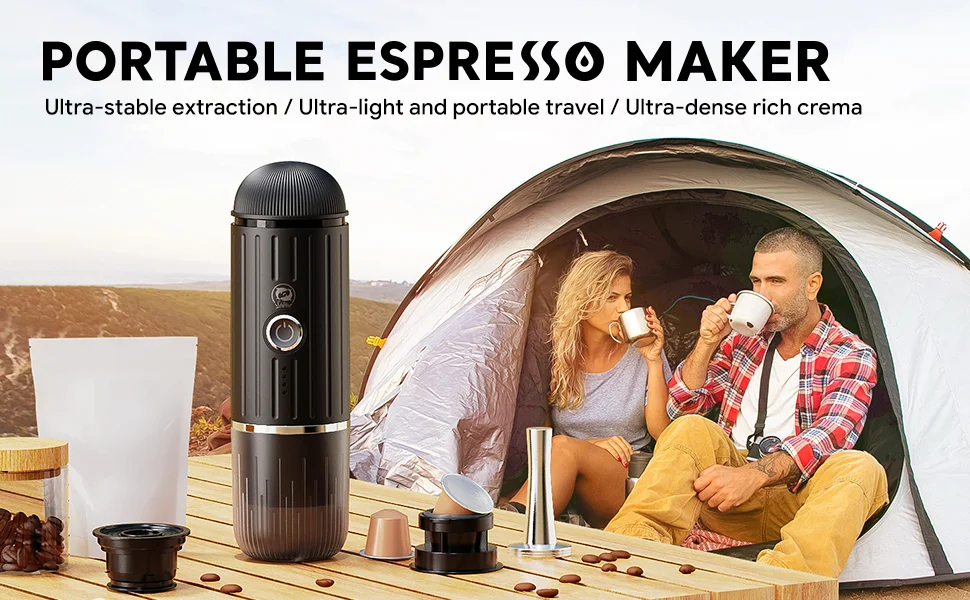 【2-in-1 BREWER & ONE-BUTTON CLICK】: Compatible with both Ground Coffee & Capsule, the camping coffee maker has been tested with hundreds of designs to ensure ease of use. With just ONE-BUTTON CLICK, you can enjoy perfect espresso in just 3-4 minutes.